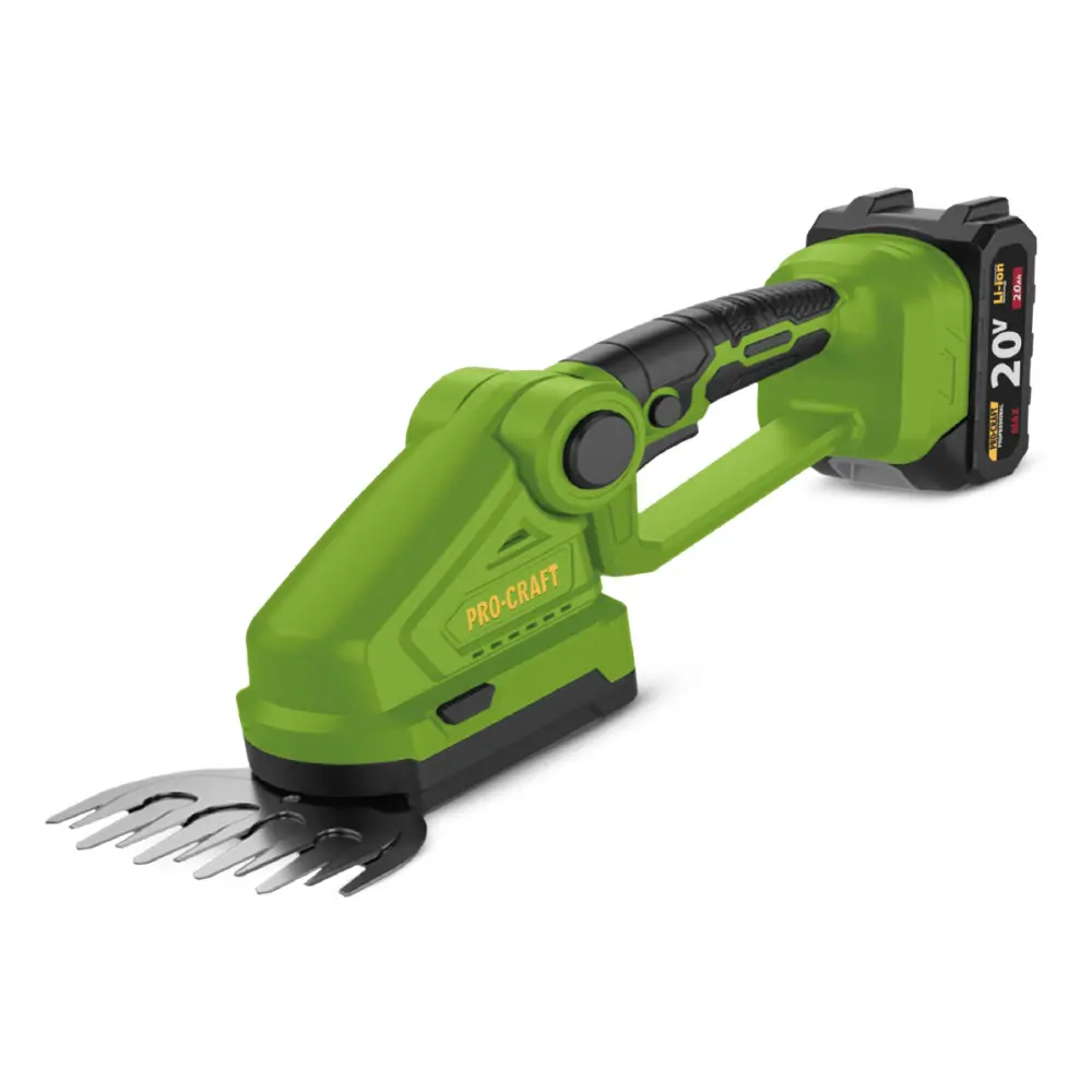 Кущоріз акумуляторний Procraft PGH2100 (1 АКБ) — універсальний садовий інструмент, що поєднує функції підрізувача трави та компактного кусторіза для догляду за газоном, клумбами та декоративними насадженнями. Працює від стандартного 20 В акумулятора, що забезпечує повну автономність без проводів та розеток, а також дозволяє комфортно пересуватися ділянкою. Інструмент виділяється простотою в обслуговуванні та легкістю конструкції, а змінні насадки і регульована ріжуча головка роблять його зручним для різних типів робіт. Низький рівень шуму та вібрації робить використання пристрою приємнішим навіть при тривалому користуванні, а захист класу IPX1 забезпечує базову стійкість до вологи.